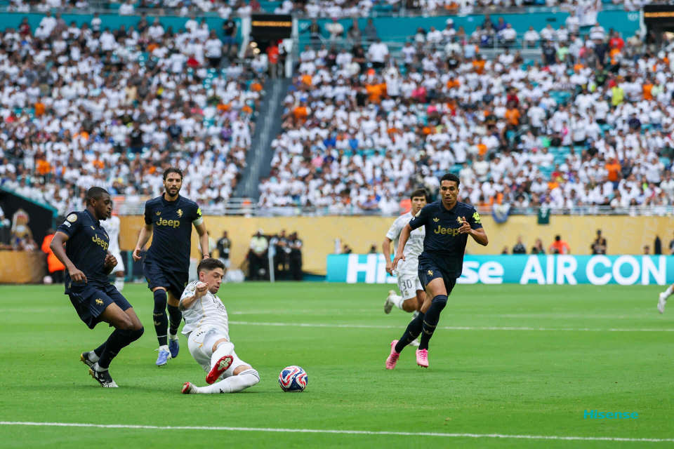 本场较量,皇马首发球员包括库尔图瓦、吕迪格、居勒尔、巴尔韦德、维尼修斯、贝林厄姆和贡萨洛等,尤文图斯则由卡卢卢、鲁加尼、阿尔贝托、洛卡特利、图拉姆、孔塞桑和穆阿尼等出战。上半场比赛,双方虽在攻防两端竞争激烈,但均未取得进球。下半场第54分钟,贡萨洛头球攻门打破场上僵局,皇马以1-0领先。第67分钟,伤愈复出的姆巴佩迎来本届世俱杯首秀,并帮助球队成功守下比赛胜利。